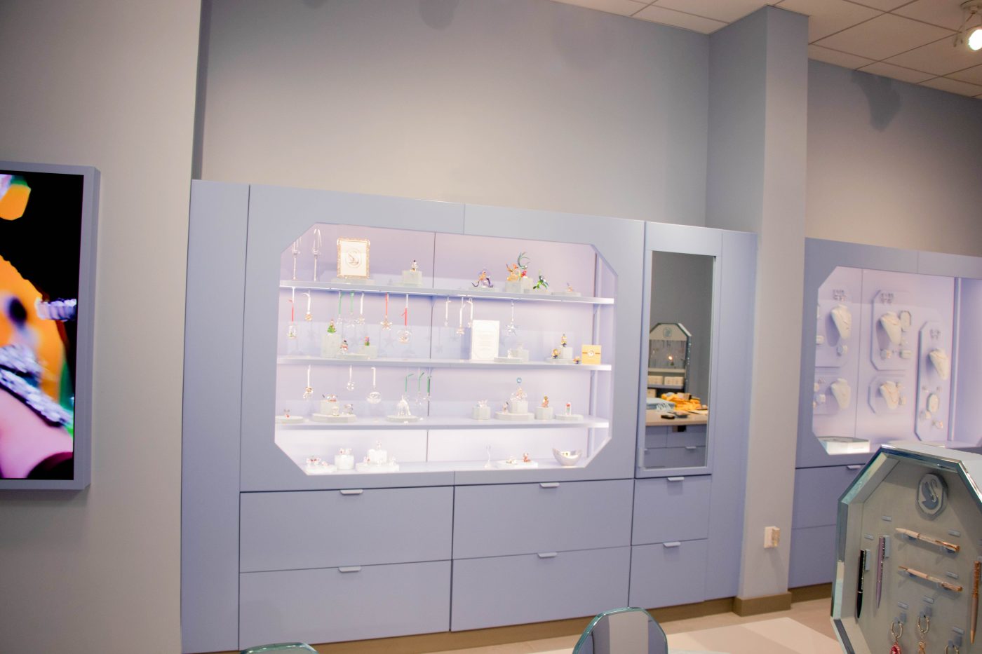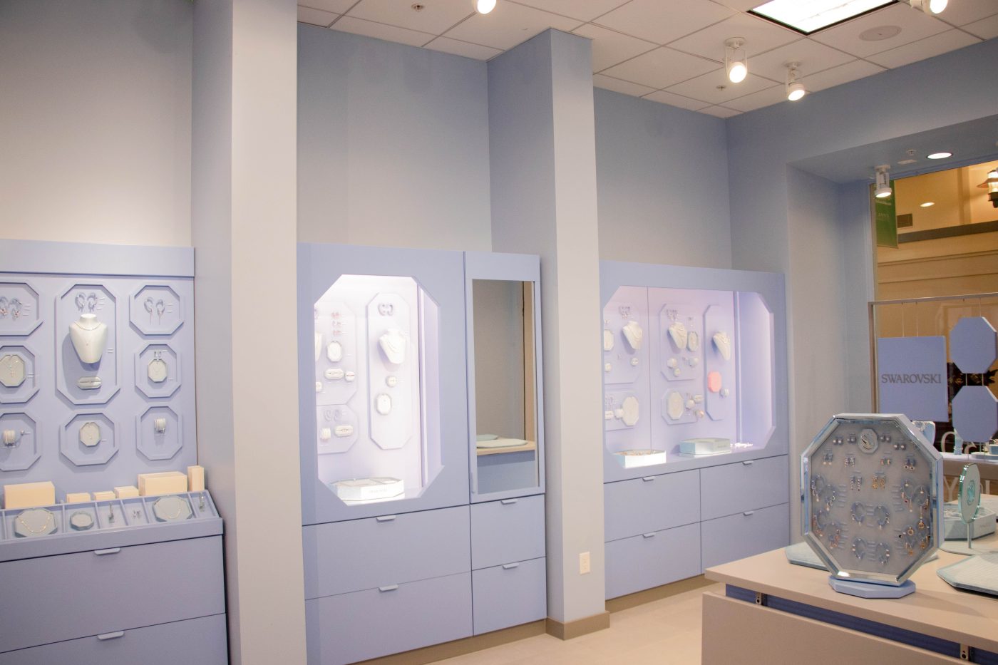 Empire completed the construction contract for Swarovski, within Eastview Mall, located at 7979 Pittsford-Victor Road (Route 96) in the Town of Victor, NY. In partnership with idX Corporation, and landlord, Wilmorite Management Group, Empire renovated the approximately 817 square foot storefront near Center Court, between Janie & Jack and Kay Jewelers. Swarovski returns to Eastview in time for the 2025 holiday season. To reflect the brand’s new visual identity, guests will be welcomed into a sensorial retail space to discover an array of tempting and tantalizing crystal treasures. They will be joining eighteen new merchants and several new store relocations within the super-regional shopping center.